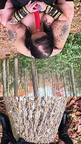 Oiled Goth Girl Fucks Stick in the Forest