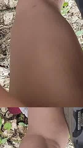 Public playing with my chunky pink snatch on picnic blanket in forest