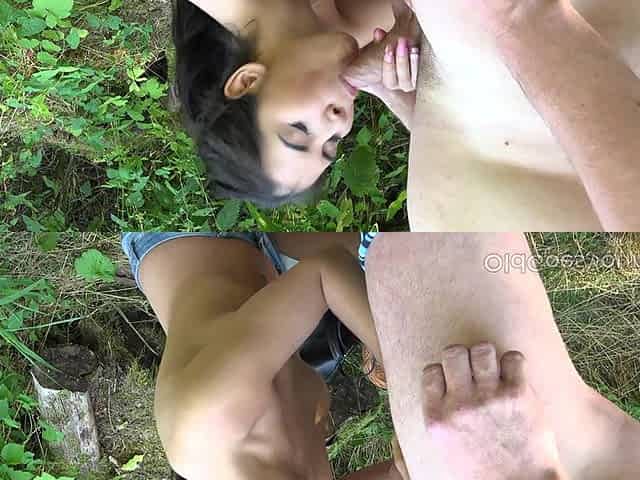 Отсосала член друга во время прогулки в лесу - Отсосала член на природе