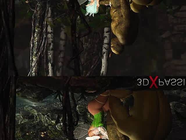 Threesome with a beautiful hot fairy and two orcs in the night forest
