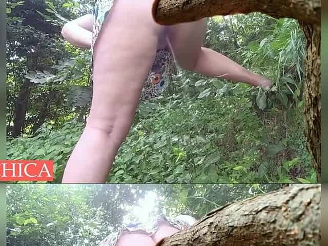 Public nudity in the woods: walking around in a short skirt without panties and baring it all