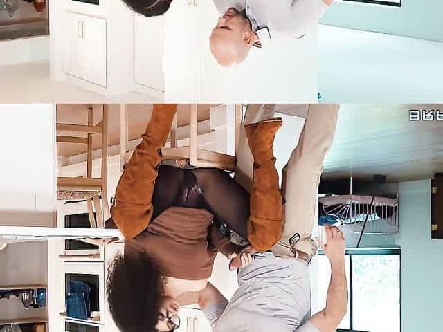 Curly-haired Bombshell Gets Boned In The Kitchen - Remy Woods And J Mac