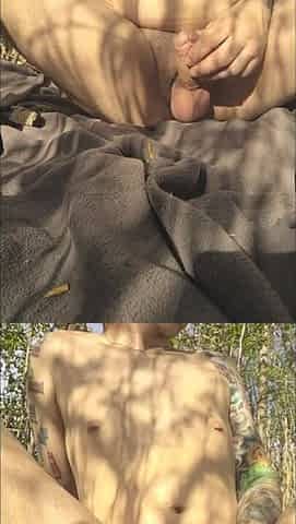 Daddys pierced schlong in the woods. Loud groaning ejaculation