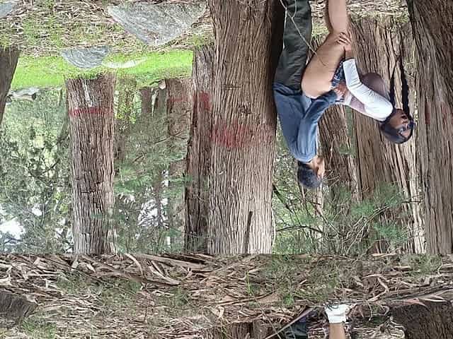 De excursión en el bosque se pone caliente en media caminata, buscamos un lugar solitario casi nos