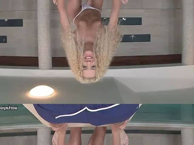 Красивая милфа с шикарной грудью делает растяжку в лесу и раздевается. Настоящий эксбиционизм.