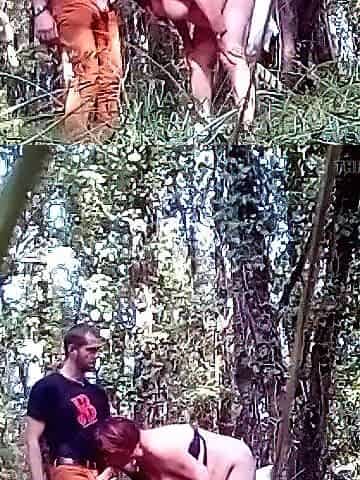 Dirty outdoor 18yo girl suck on hard male pole in the woods