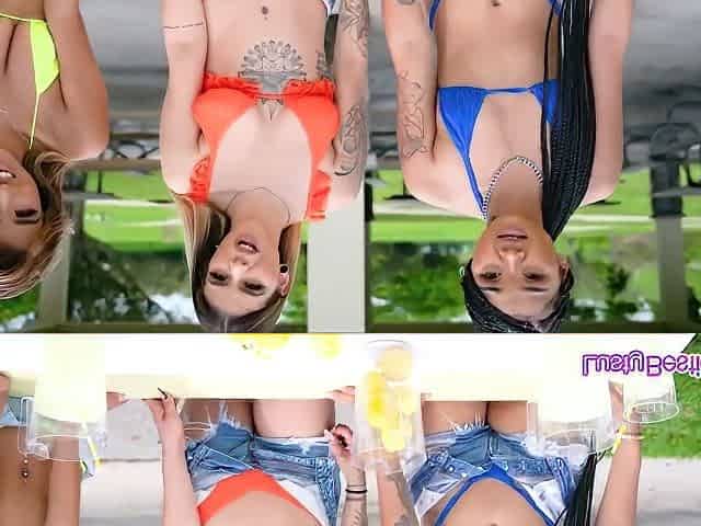 Interracial Bikini Besties Sharing Knob In Foursome