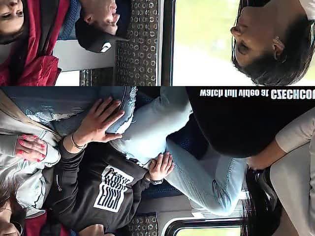 Marvelous teen brunette hair is having a foursome in the educate, in the centre of the day
