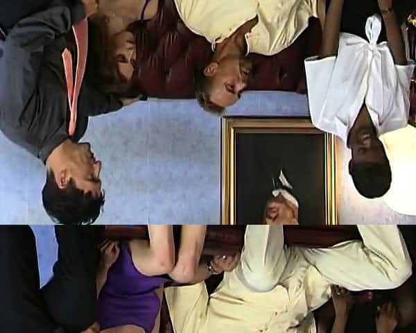 Gals interrupted whilst watching a movie scene (#FOURSOME)