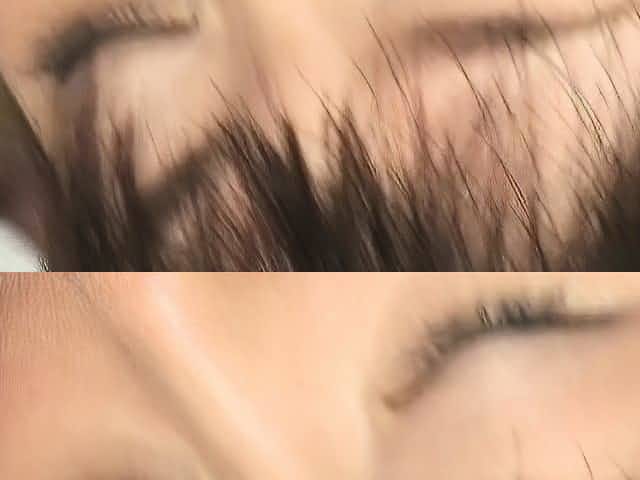 4 eyed freak looks at his buddy banging his slim brunette cutie in sideways style
