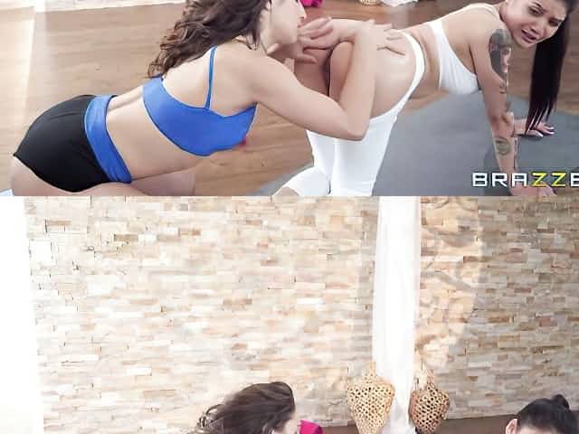Blonde Dakota Skye getting pounded on all fours on a yoga mat