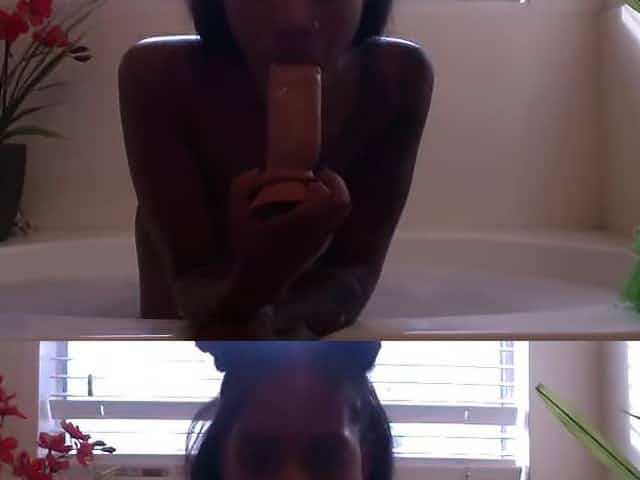 Interracial lesbian couple getting freaky in the bath tub