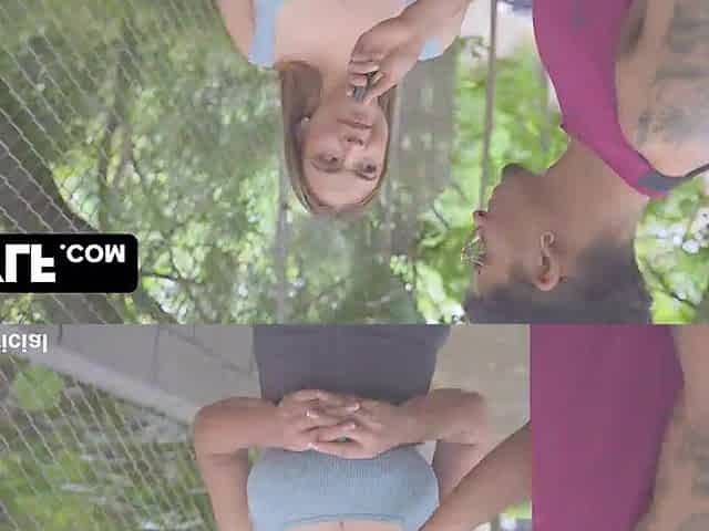 Freaky brunette reaching for a big black cock on the porch