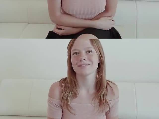 Cute freckled redhead teen has orgasms during POV casting