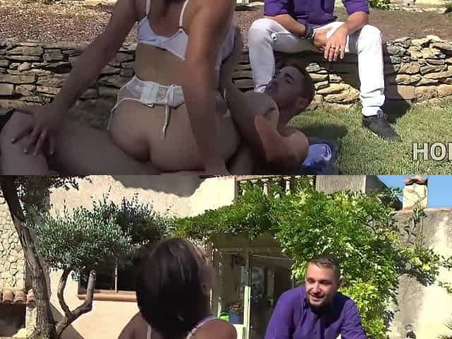 Outdoor FFM threesome by the pool with Mocha Love & Fonda French