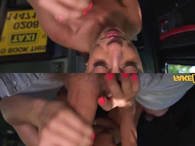 Shaved hottie Angela Kiss sucks and rides two hard cum guns