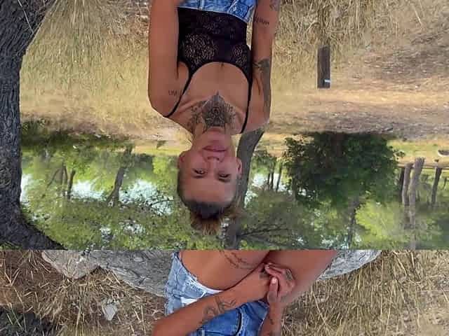 She Gets Caught Touching Herself in the Woods - French Amateur Hairy Redhead Exhibitionist
