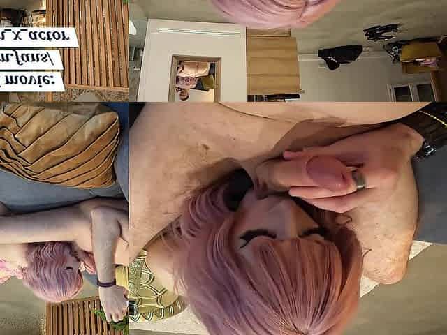 My pink-haired sissy wench caged sucks my jock unfathomable