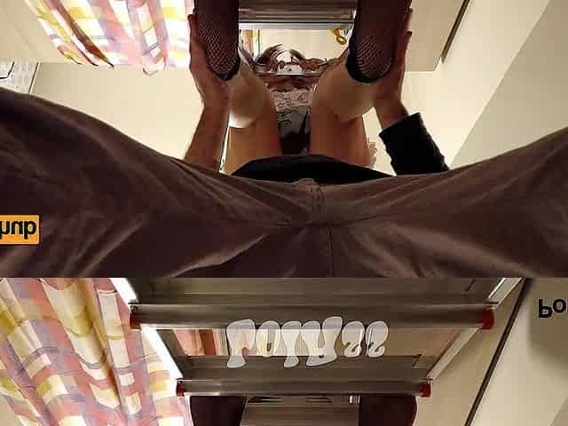 POV : Riding your weenie in ebony underware , bottom view