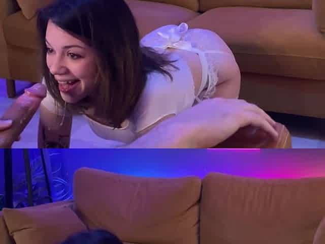 elle le fait grossir avec sa bouche avant de monter sur lui