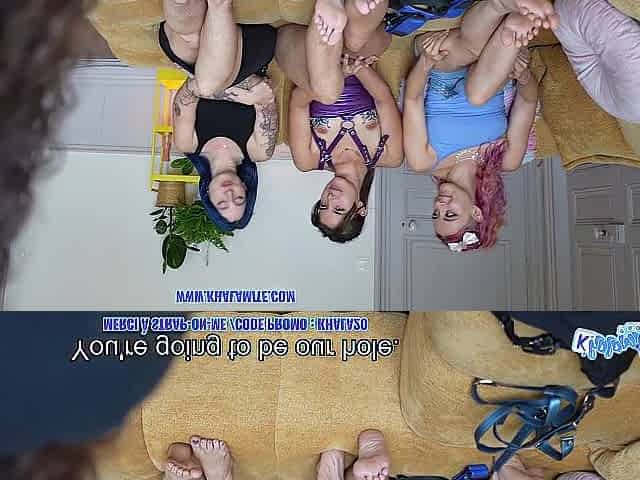 3 girls fuck him hard and make his dream come true - Pegging Domination MWWW