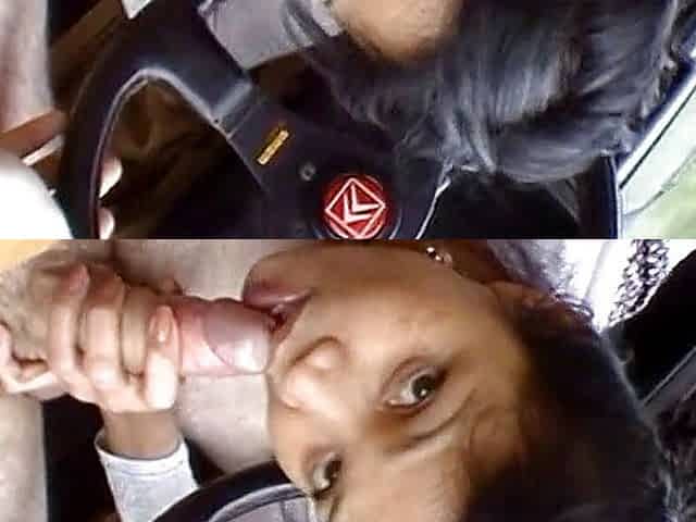 Good looking ebony sucking cock in car