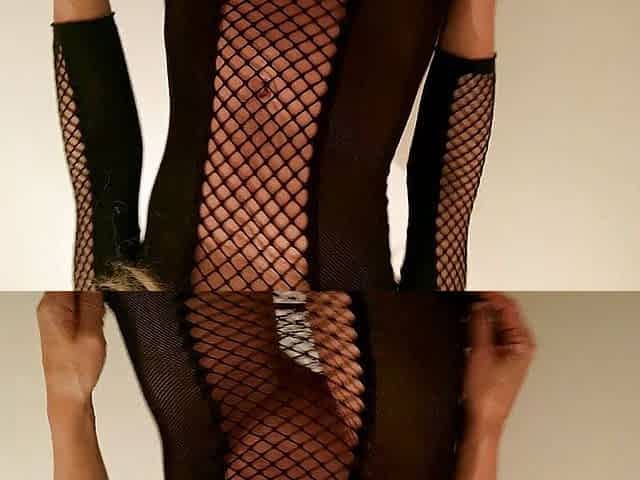 Hot amateur milf in fishnet teasing