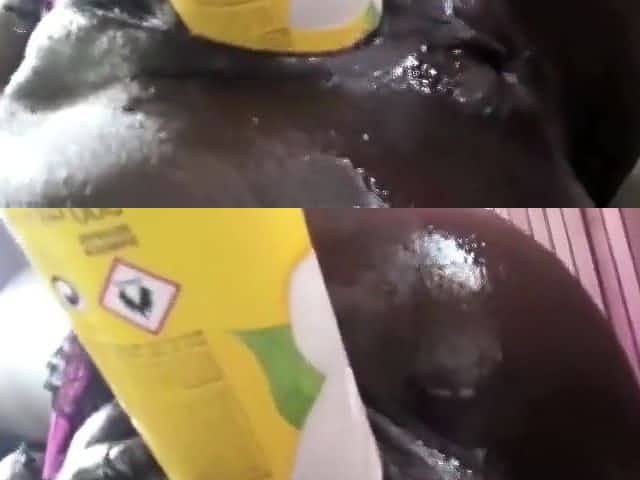 Une jeune brunette se fait du bien avec une bouteille