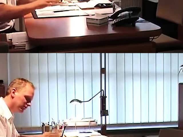 Une secretaire lubrique montre sous sa jupe