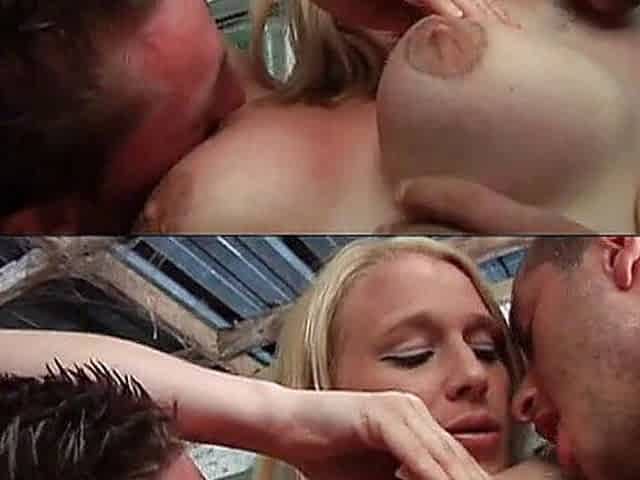 Blonde bitch gets plowed in her both holes by a muscular guy