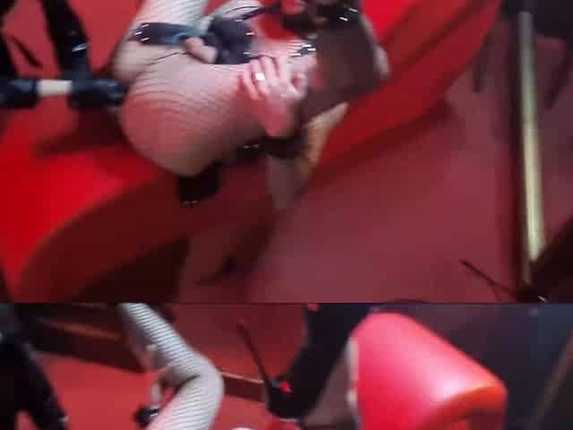 Sissy lola Latex noir talon aiguille et cheveux violet s'enfonce un Sex-toys noir énorme