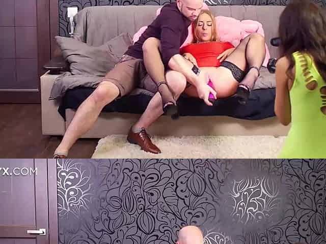 FFM French mature ass fucked for her amateur casting couch with a redhead slut