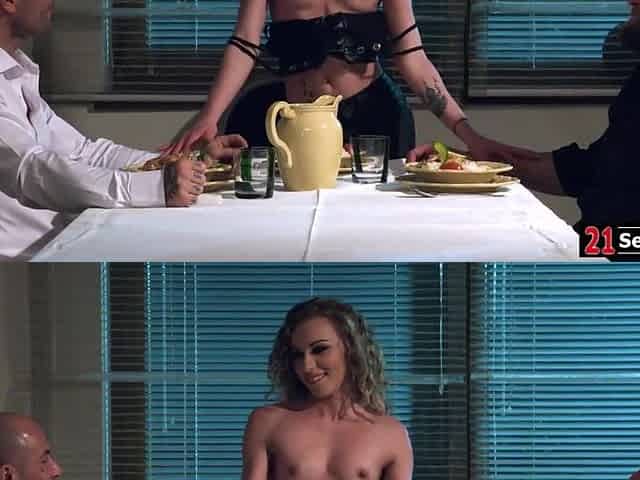 Petite french babe having dp threesome after dinner date