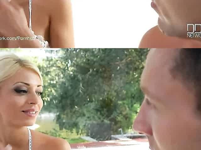 Voluptuous blonde Haley Scott films a steamy threesome on set