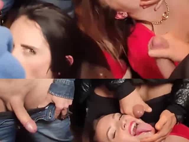 ces 3 salope se font souiller de sperme lors d un bukkake géant