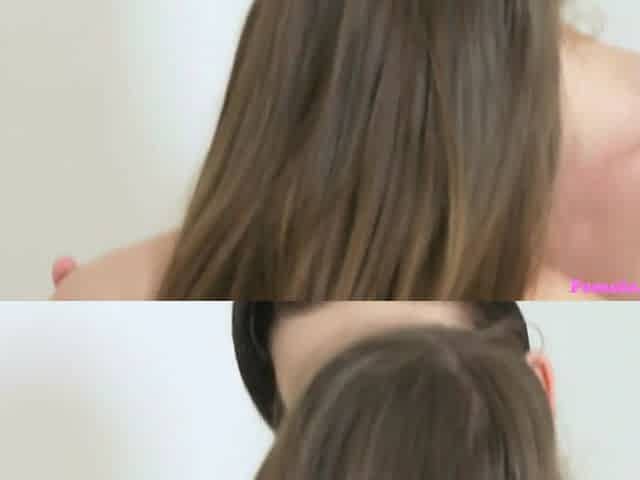 Adorable Lesbo French sluts sharing big black dildo