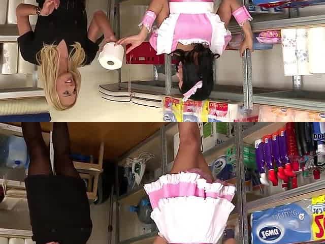 LickSonic Movie Peggy B and Sandy, Fai-haired sapphic lady Sandy craves for some dildo stuffing, and her cute French maid Peggy