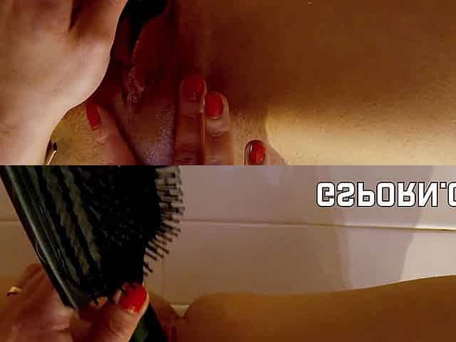 Hair brush insert in the pussy