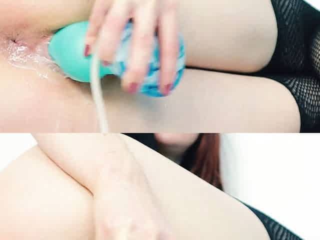 fucking tight and wet pussy and ass with double dildo in the bathroom