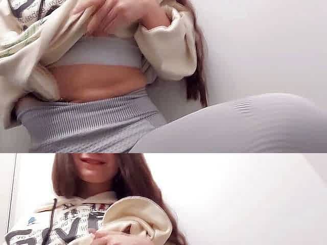 Gorgeous babe caresses her body and makes her pussy wet by finger fucking herself