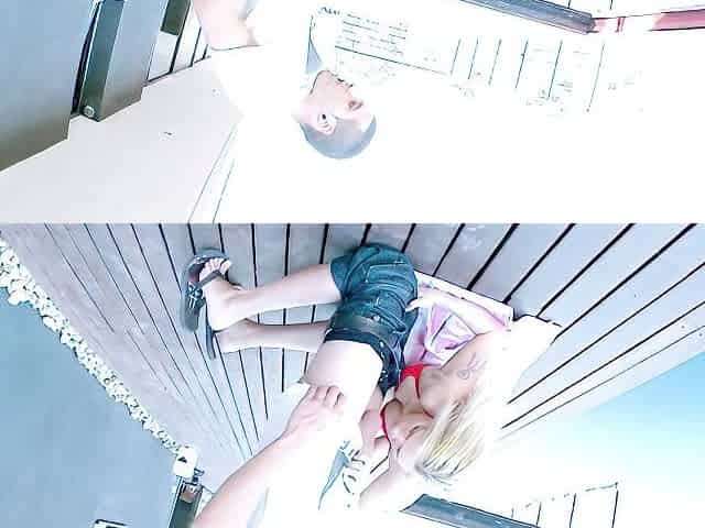 Slutty Redhead MILF Sucks in a Field with a Buttplug. Huge Facial Cumshot