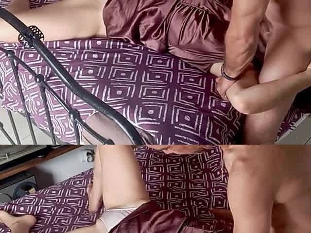 1168 - French Amateur, Doggystyle Fuck, Satin Lingerie, Clothed Sex, Blowjob, Rimjob