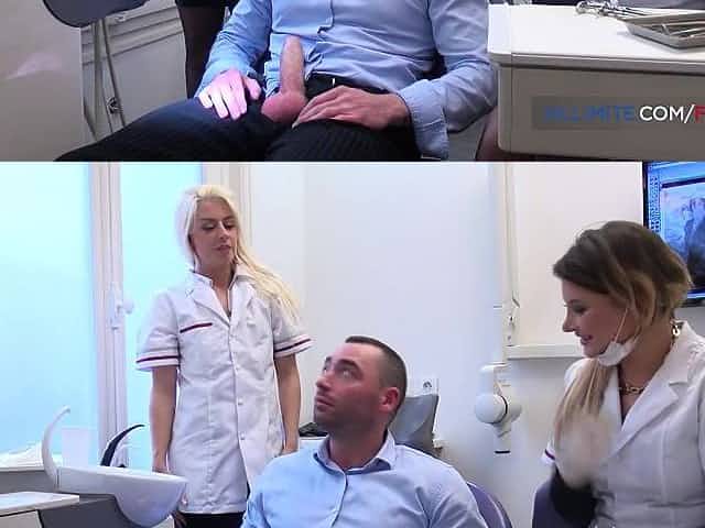 Golden-Haired dentist bangs her patient