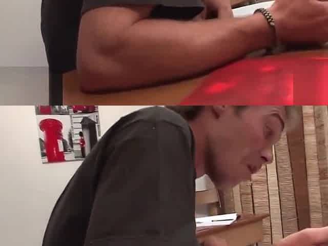 Busty French blonde, Sabrina Sweet is getting spit roasted in front of the camera, in her bedroom
