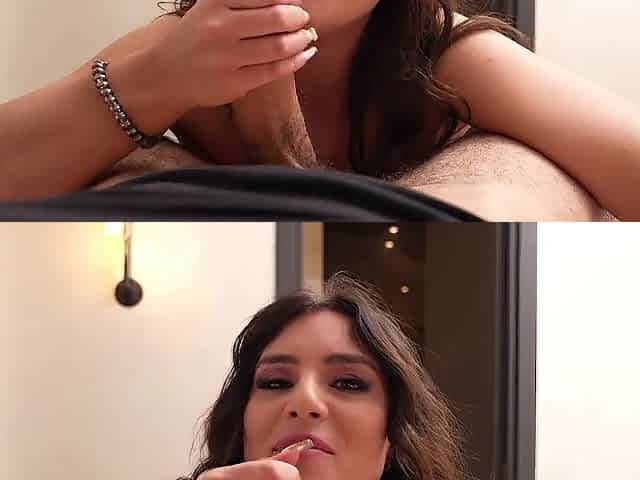 Vittoria, a beautiful brunette, offers herself two stallion cocks!