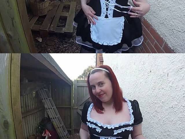 French Maid in stockings and Heels outdoors