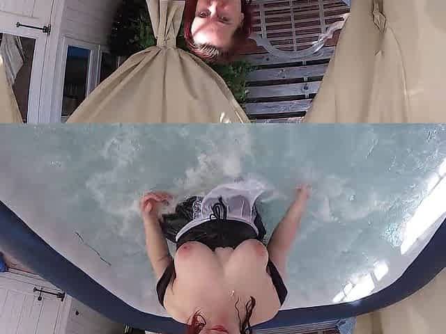 "French Maid Blowjob with cum in mouth in hot tub"