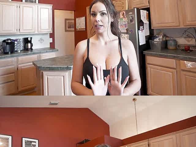 My stepsister dildoing herself with a huge sex toy, sucking my cock to make me cum on her big tits