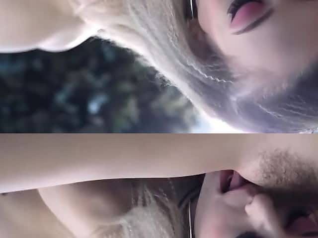 After her first kiss a brunette licks her blonde gfs pussy