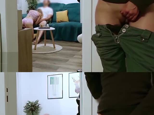 Teen spies sister fucked by their roommate and masturbates